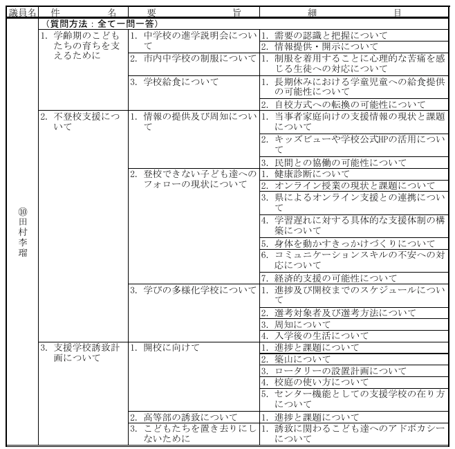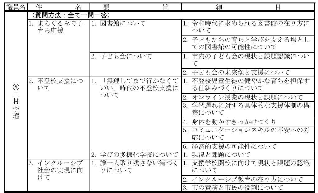 令和5年 第4回 一般質問