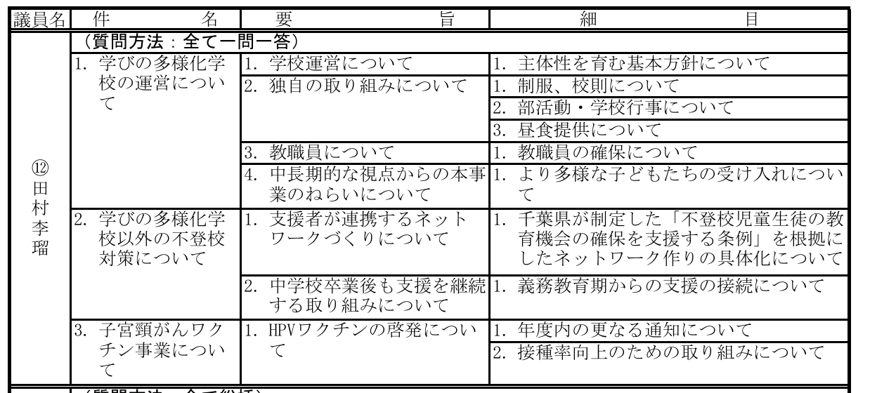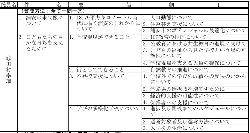 議会での質問内容を日付別にご覧いただけます